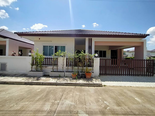 ให้เช่าบ้านเดี่ยวชั้นเดียวในโครงการใกล้สนามบิน มี 3 ห้องนอน 3 ห้องน้ำ 1 ห้องครัว จอดรถได้ 1 คัน พื้นที่ 50 ตารางวา ราคา 16,000 บาทต่อเดือน