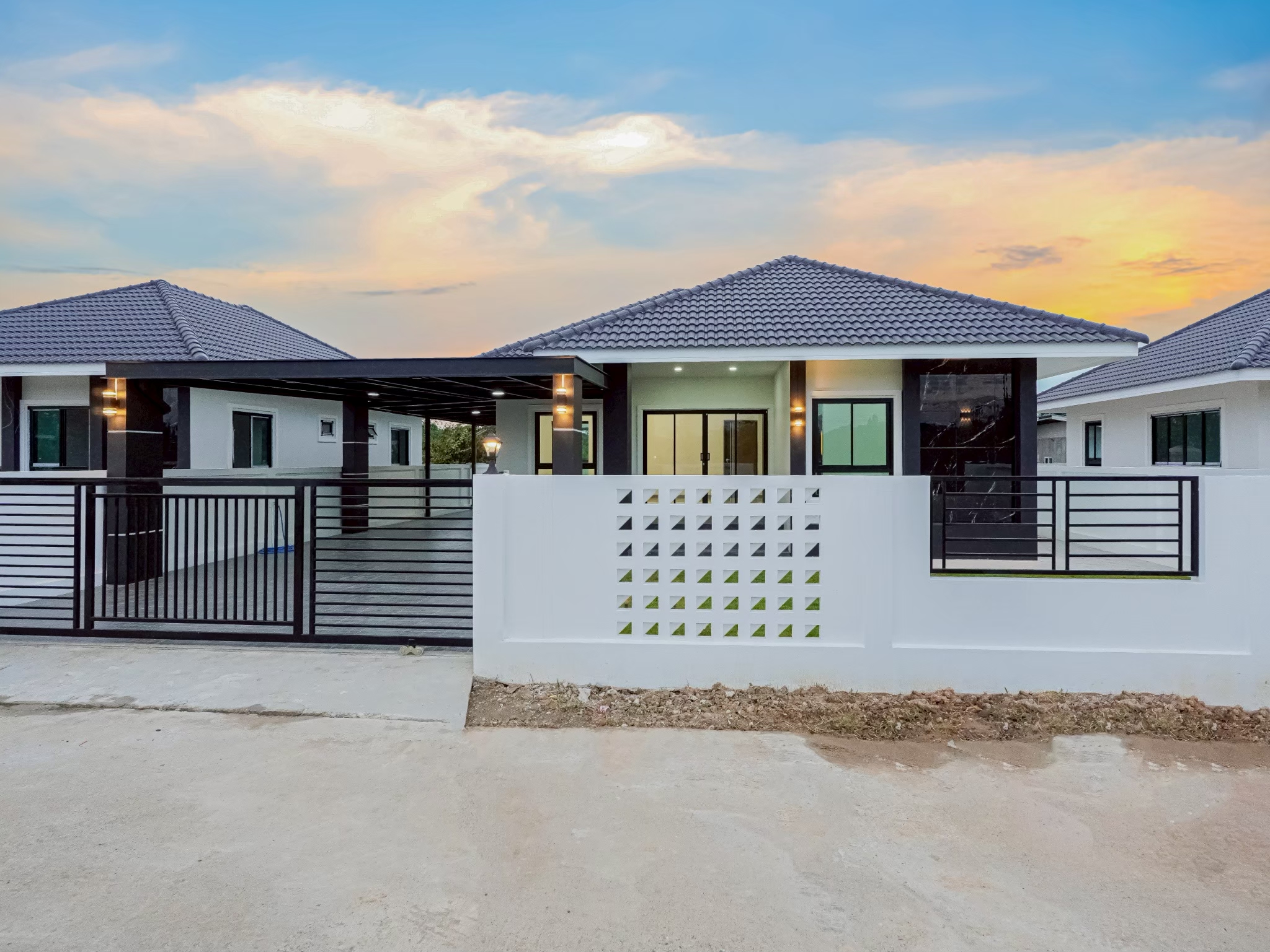 ขายบ้านเดี่ยวชั้นเดียว 3 ห้องนอน 2 ห้องน้ำ 1 ห้องครัว 2 ที่จอดรถ ขนาดที่ดิน 63 ตรว. พื้นที่ใช้สอย 120 ตรม. ขายราคา 2,232,000 บาท !!!! โอนคนละครึ่ง