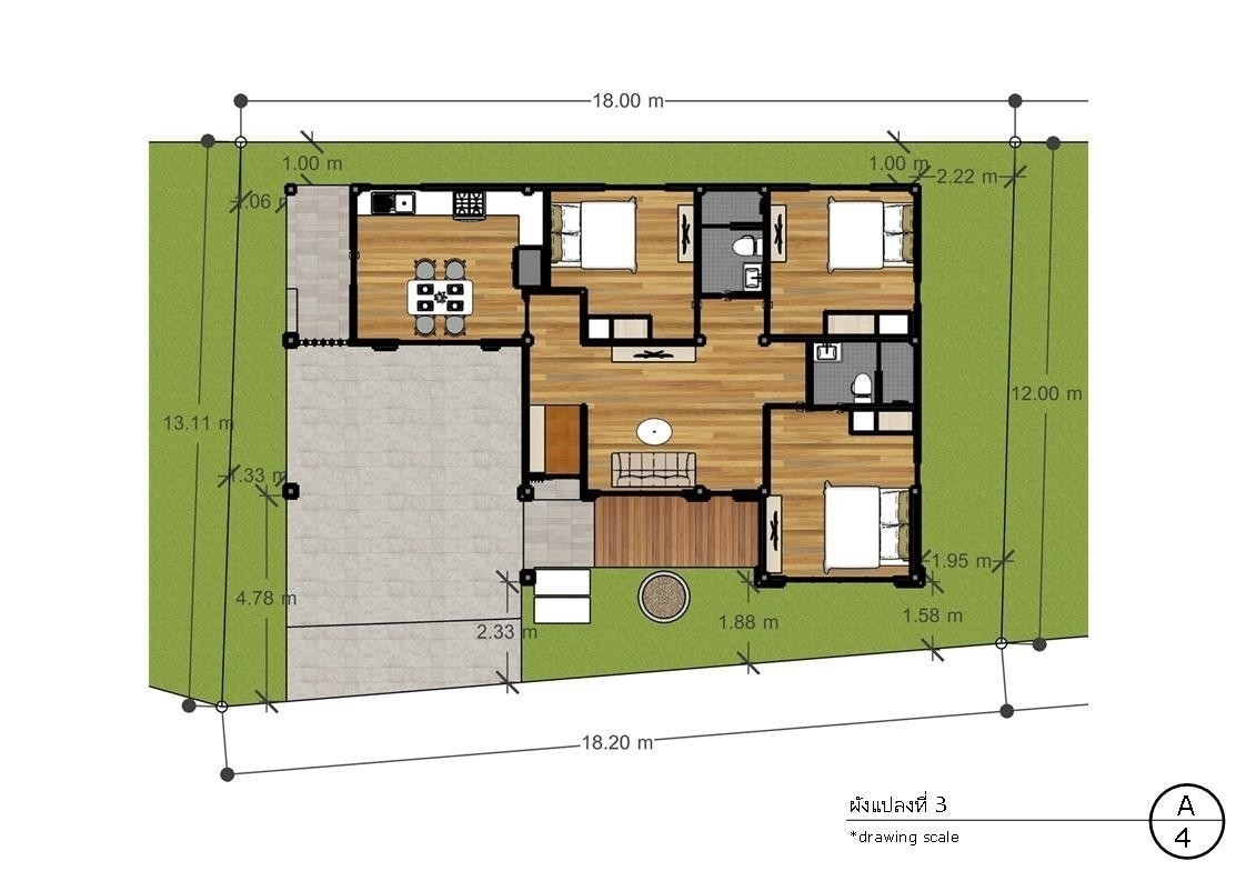 3ห้องนอน 2ห้องน้ำ 1ห้องรับแขก 1ห้องครัว