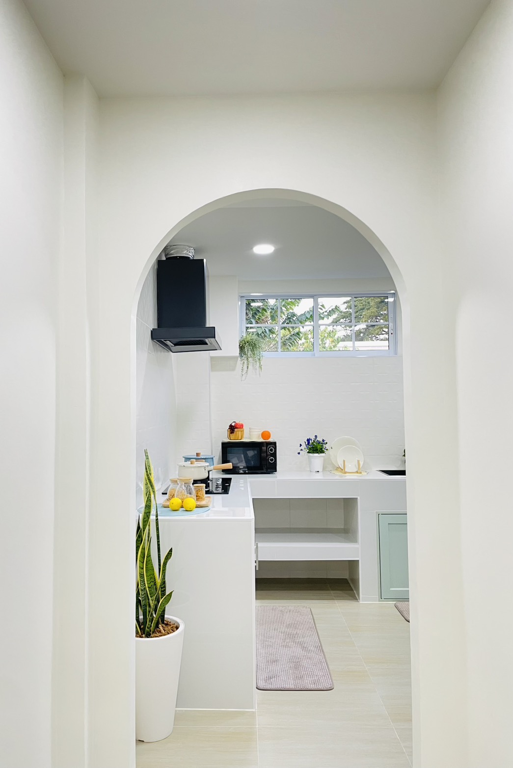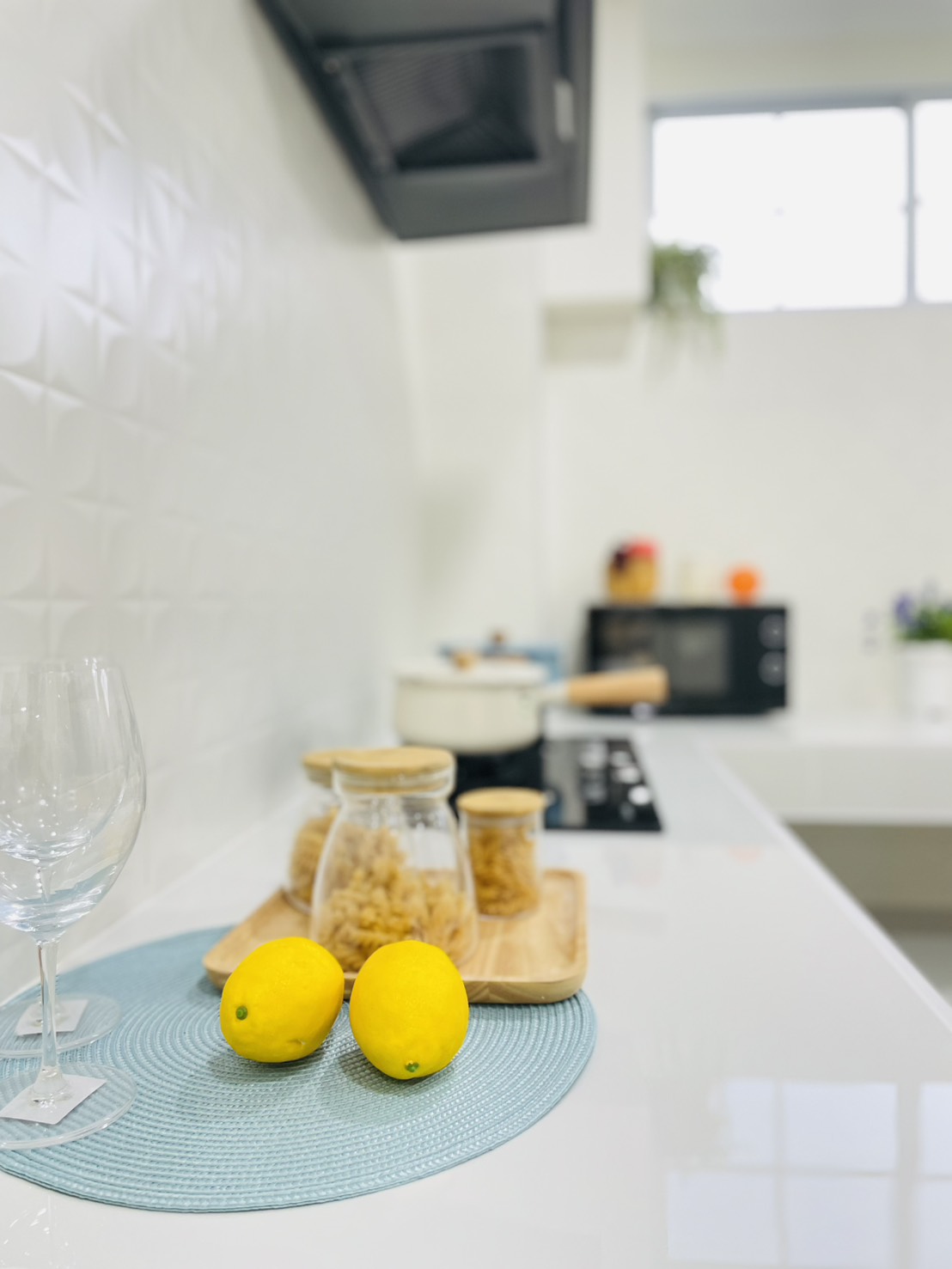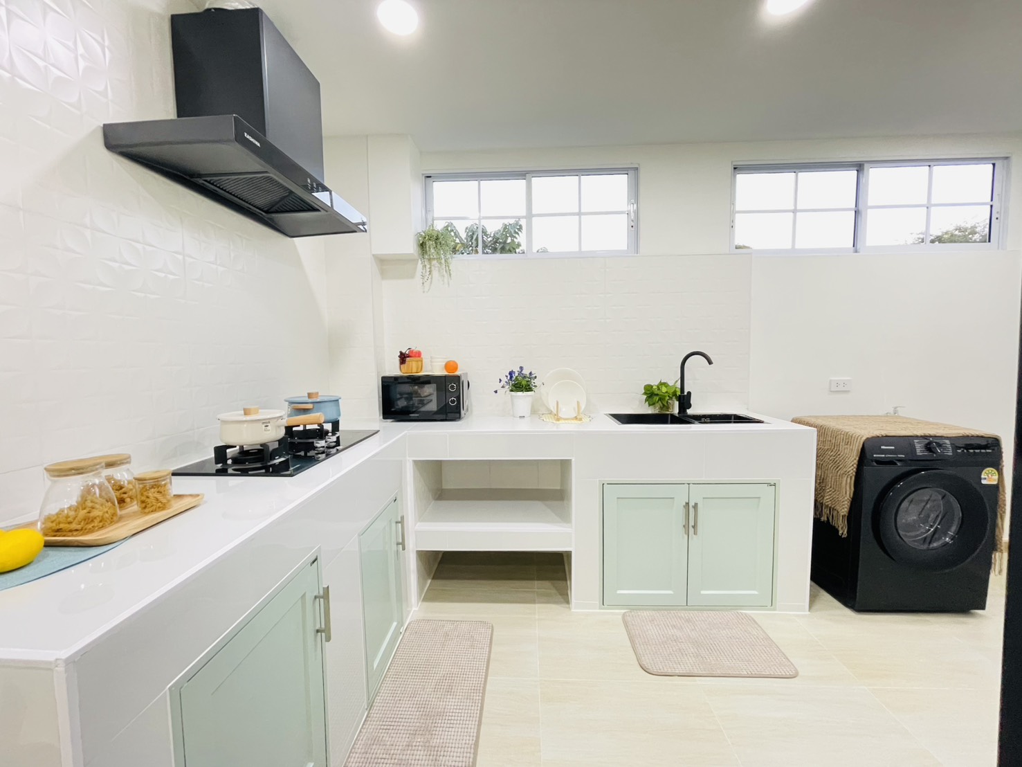 - Gas stove + range hood