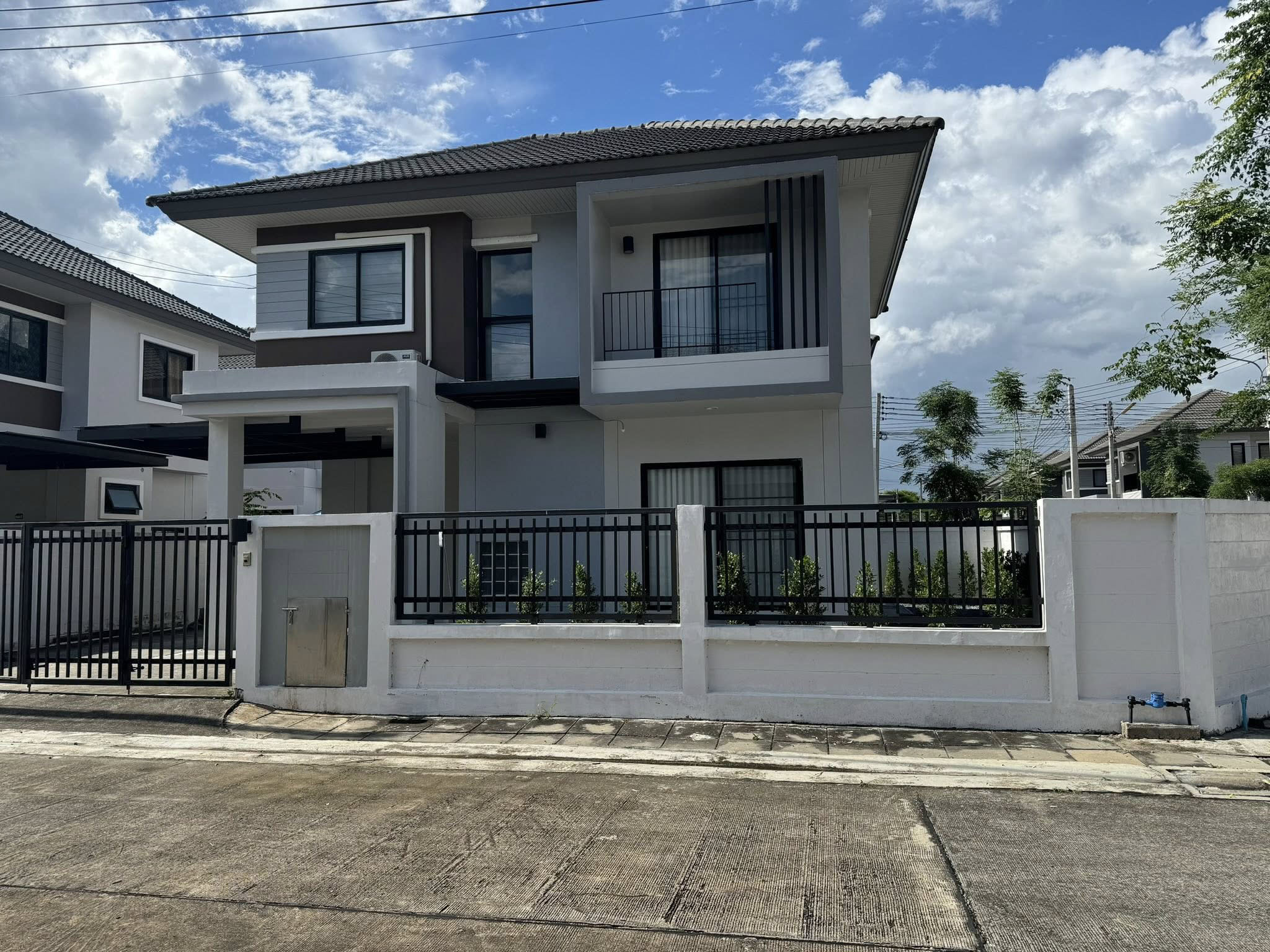 ให้เช่าบ้านเดี่ยวสองชั้น 4 ห้องนอน 3 ห้องน้ำ 1 ห้องครัว 2 ห้องเก็บของ 2 ที่จอดรถ ขนาดที่ดิน 80.7 ตรว. พื้นที่ใช้สอย 221 ตรม. ราคา 35,000 บาท / เดือน