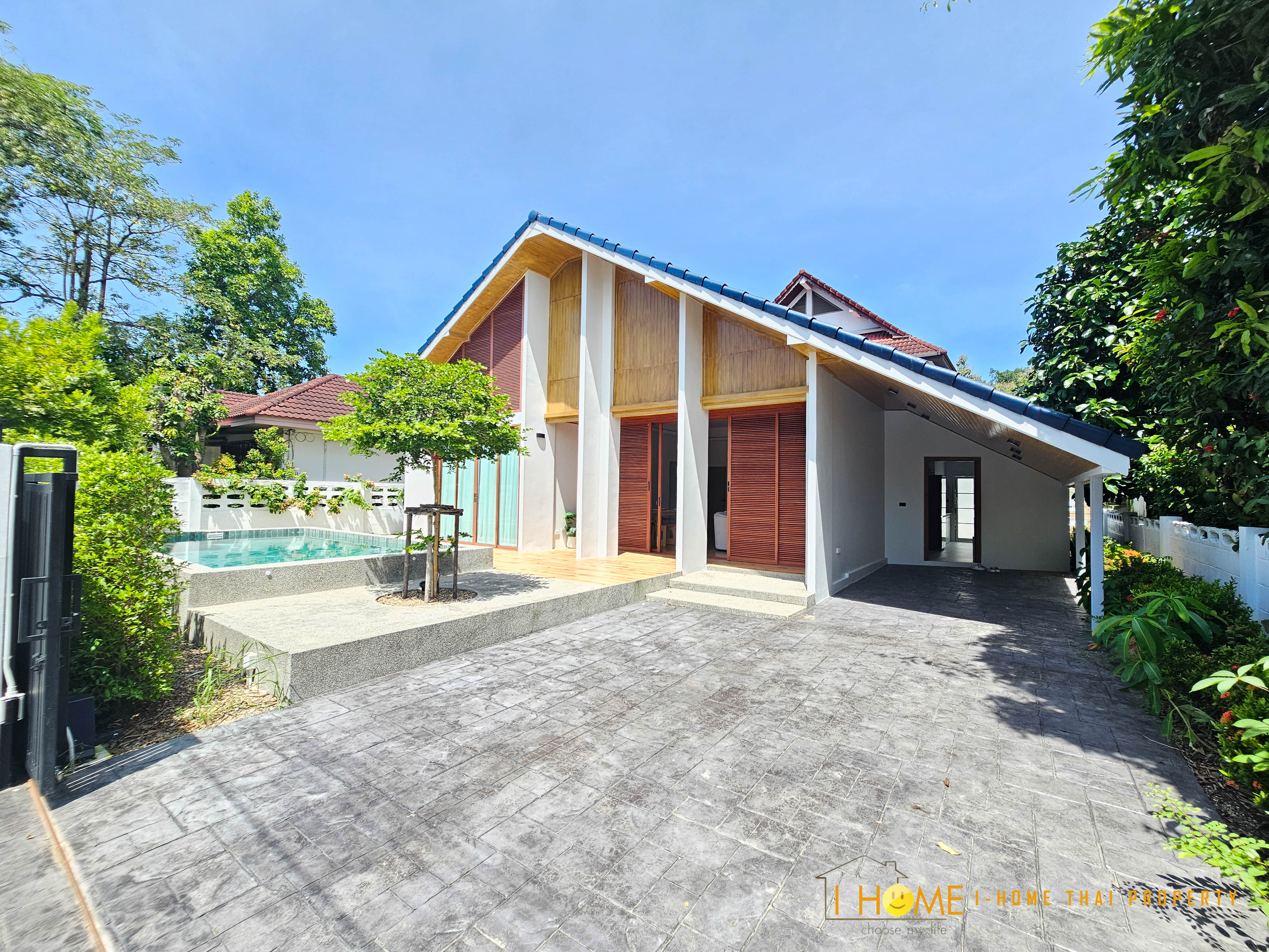 ให้เช่าบ้าน Pool villa ชั้นเดียว 3 ห้องนอน 4 ห้องน้ำ 1 ห้องครัว 2 ที่จอดรถ ขนาดที่ดิน 75 ตรว. พื้นที่ใช้สอย 250 ตรม. ราคา 55,000 บาท / เดือน