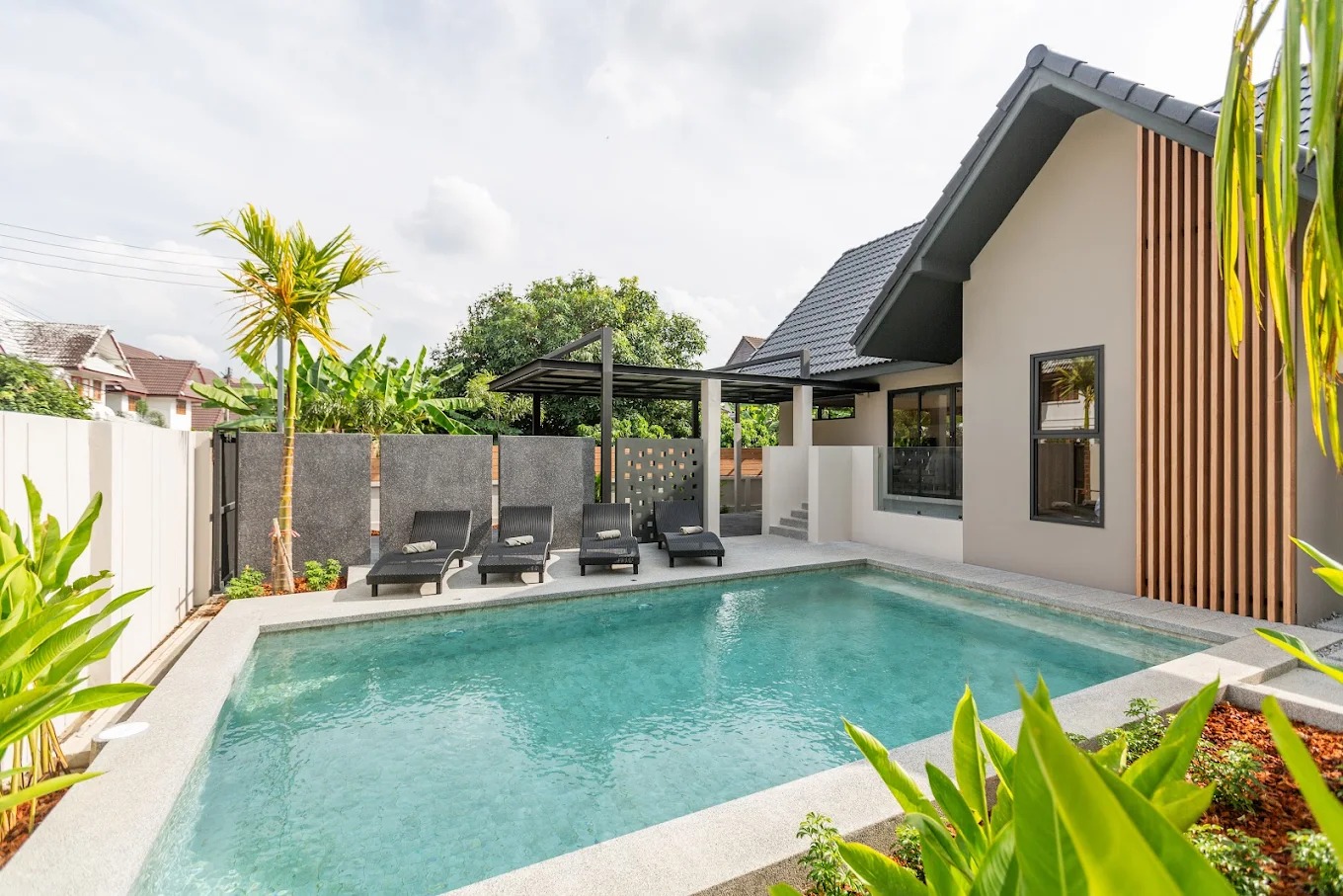 - Two-story pool villa for rent with 3 bedrooms,3 toilets and 1 kitchen.