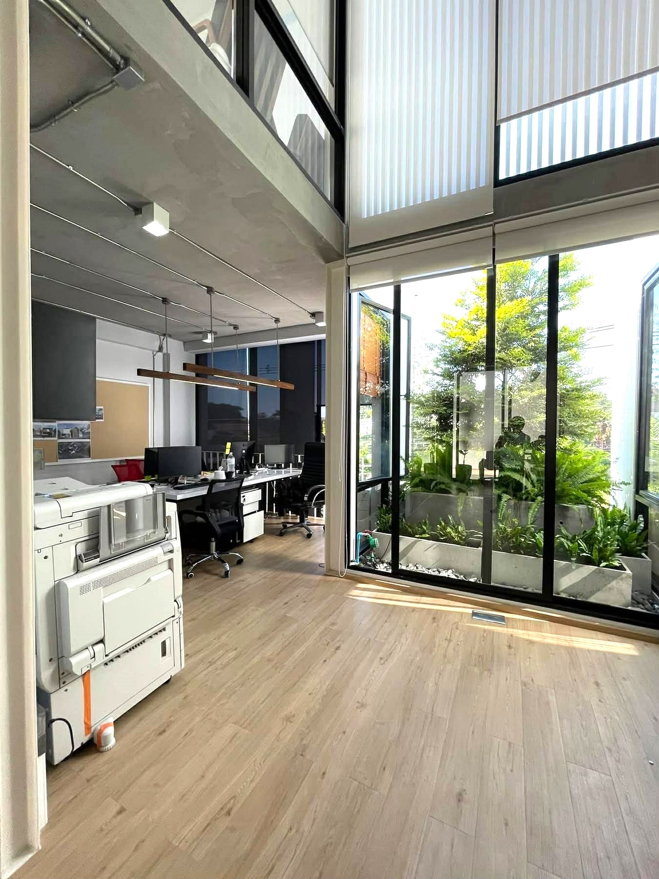 - Meeting table + work desks